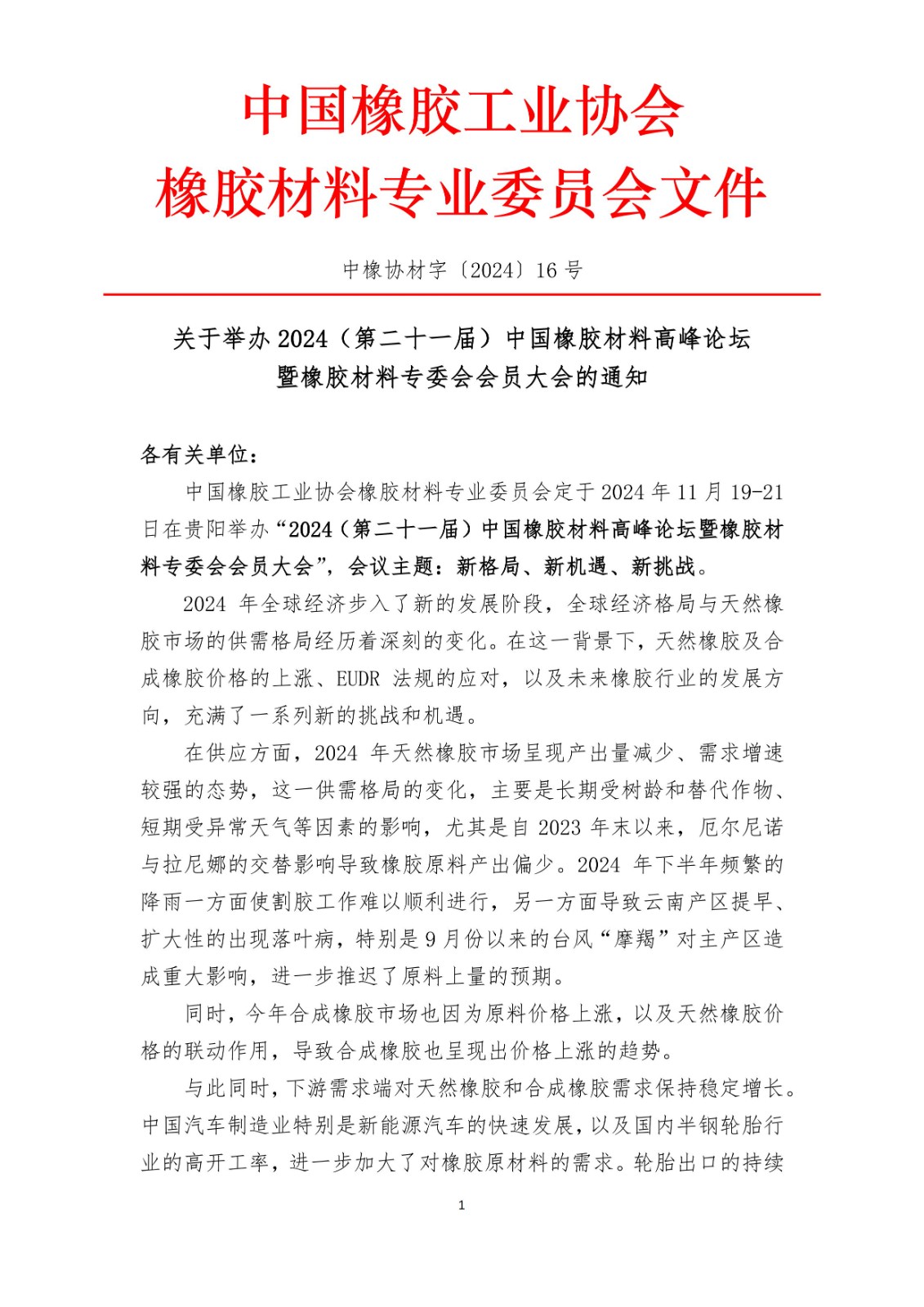 2024(第二十一届)中国橡胶材料高峰论坛暨橡胶材料专委会会员大会
