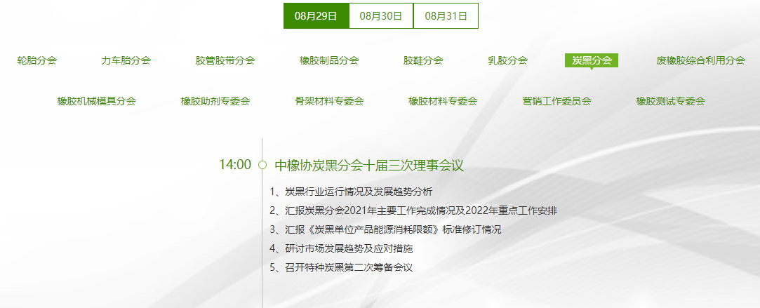 中国橡胶工业协会炭黑分会十届三次理事会议定于2022年5月17日在山东省青岛市召开,同期召开的会议有“中国橡胶工业协会十届二次理事会议、三届常务理事会议暨第十七届中国橡胶年会”。