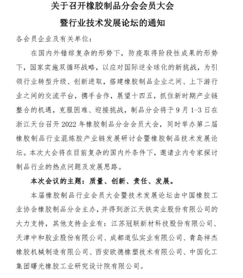 2022年橡胶制品分会会员大会暨行业技术发展论坛