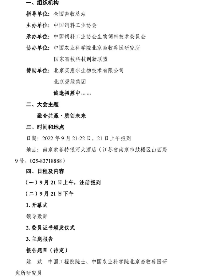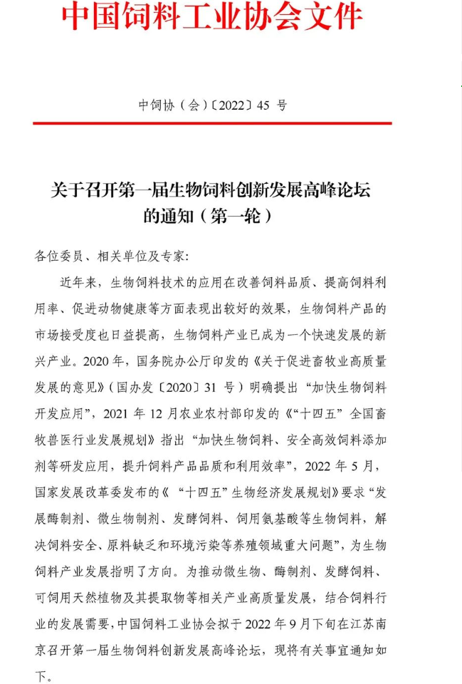 关于召开第一届生物饲料创新发展高峰论坛的通知