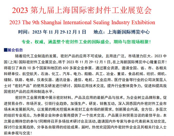 2023第九届上海国际密封件工业展览会