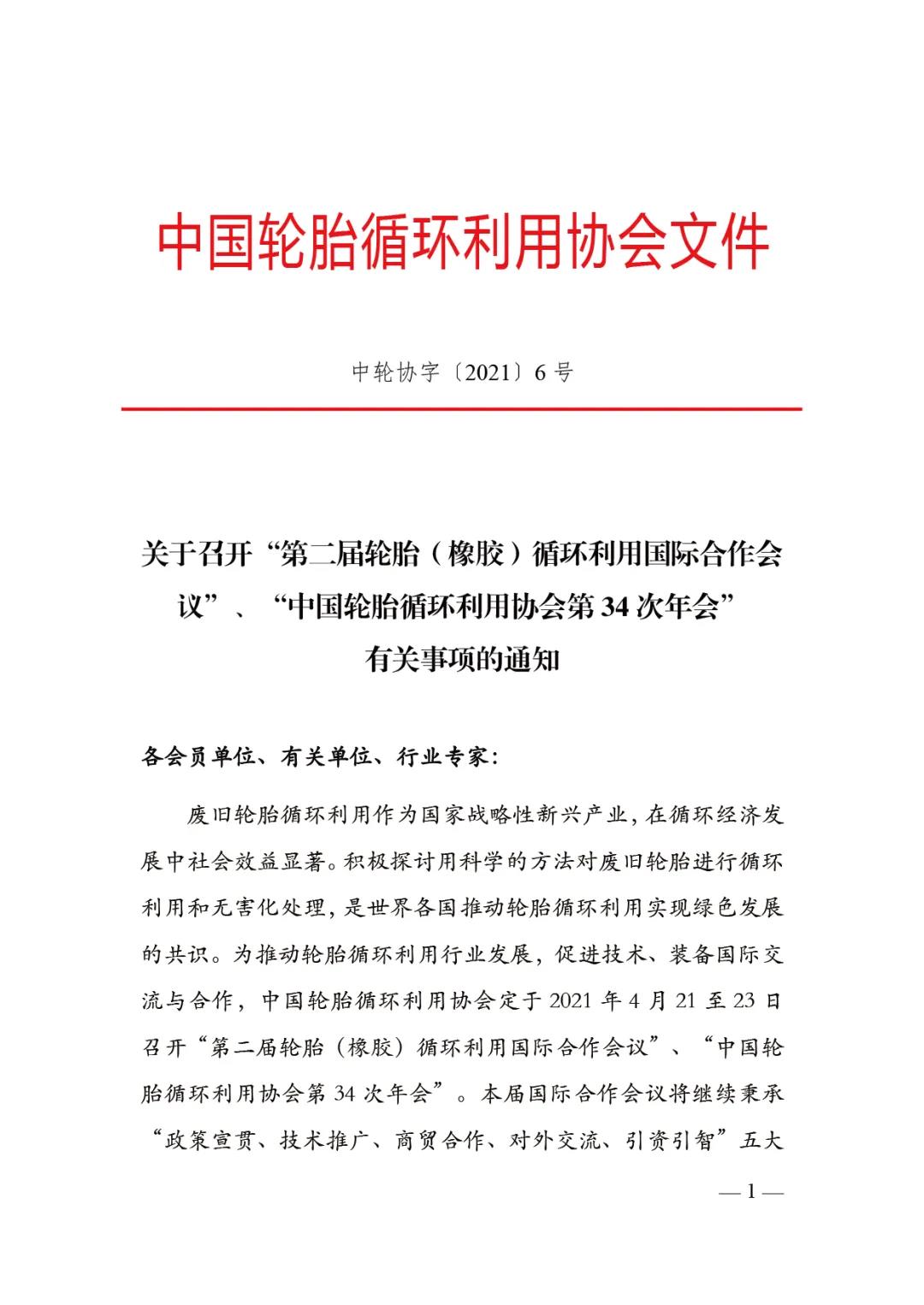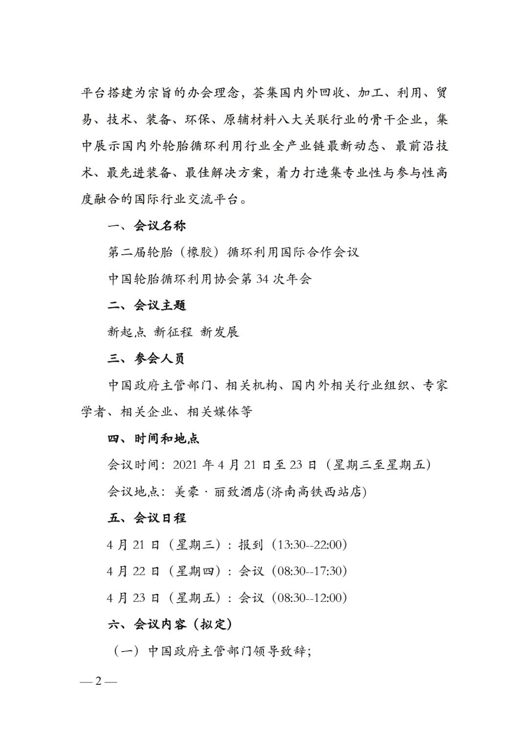 第二届轮胎(橡胶)循环利用国际合作会议
