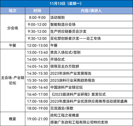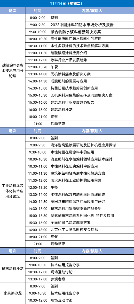 建筑涂料分论坛、工业涂层分论坛、家具漆沙龙,智能制造分论坛;