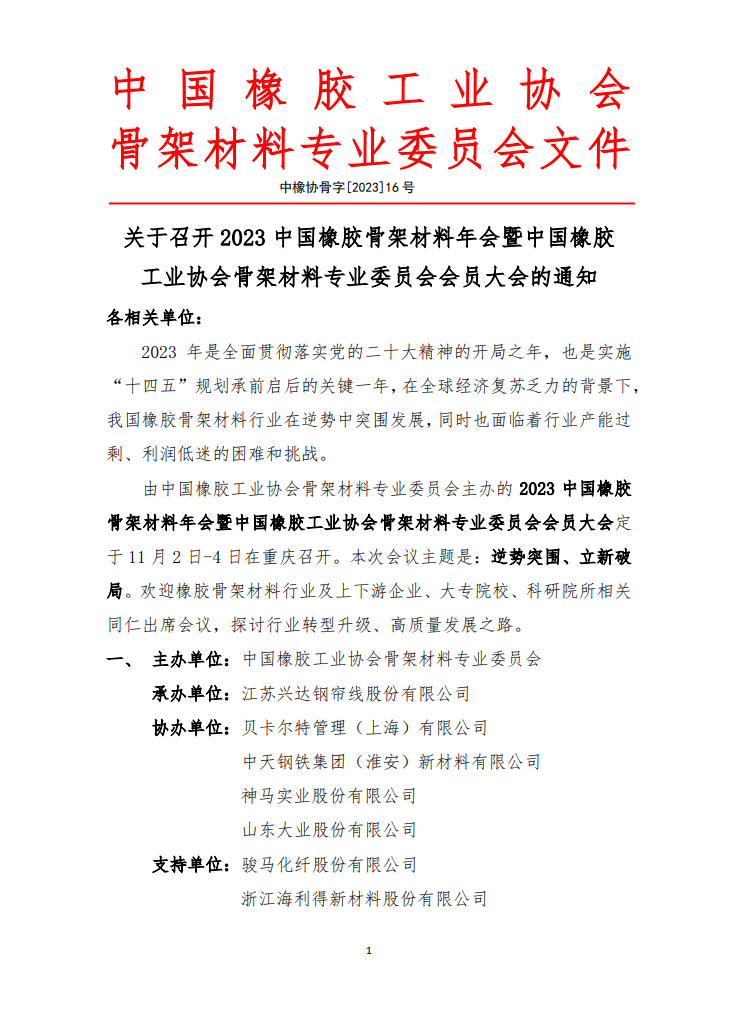 2023中国橡胶骨架材料年会暨中国橡胶工业协会骨架材料专业委员会会员大会