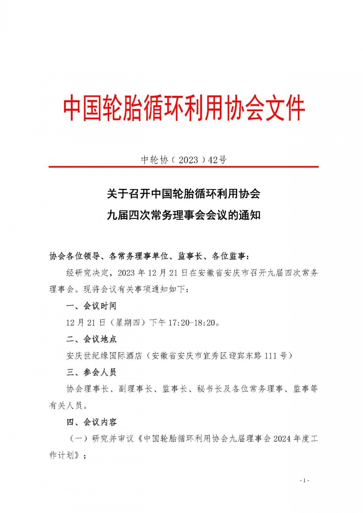 中国轮胎循环利用协会九届四次常务理事会会议