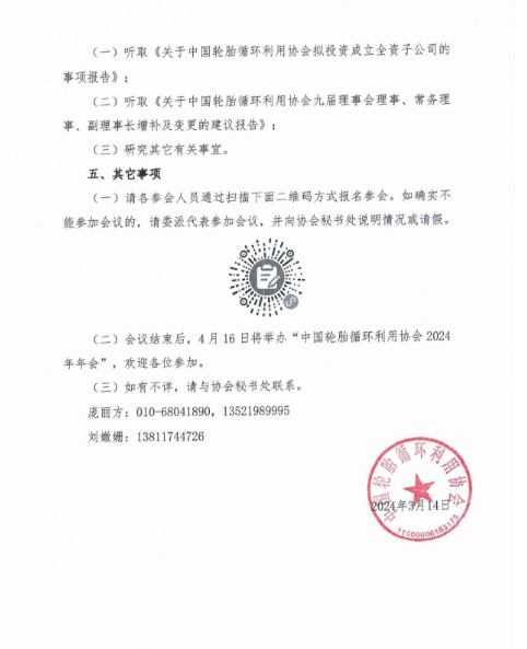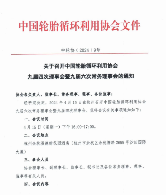 中国轮胎循环利用协会九届四次理事会暨九届六次常务理事会