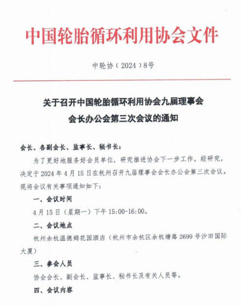 中国轮胎循环利用协会九届理事会会长办公会第三次会议