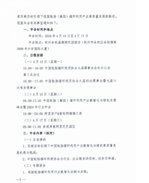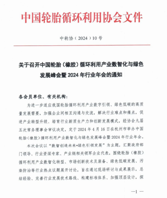 中国轮胎(橡胶)循环利用产业数智化与绿色发展峰会暨2024年行业年会