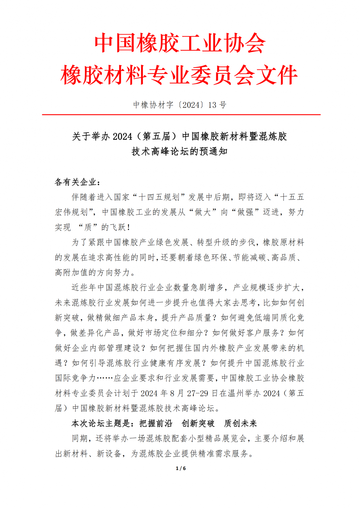 2024(第五届)中国橡胶新材料暨混炼胶技术高峰论坛