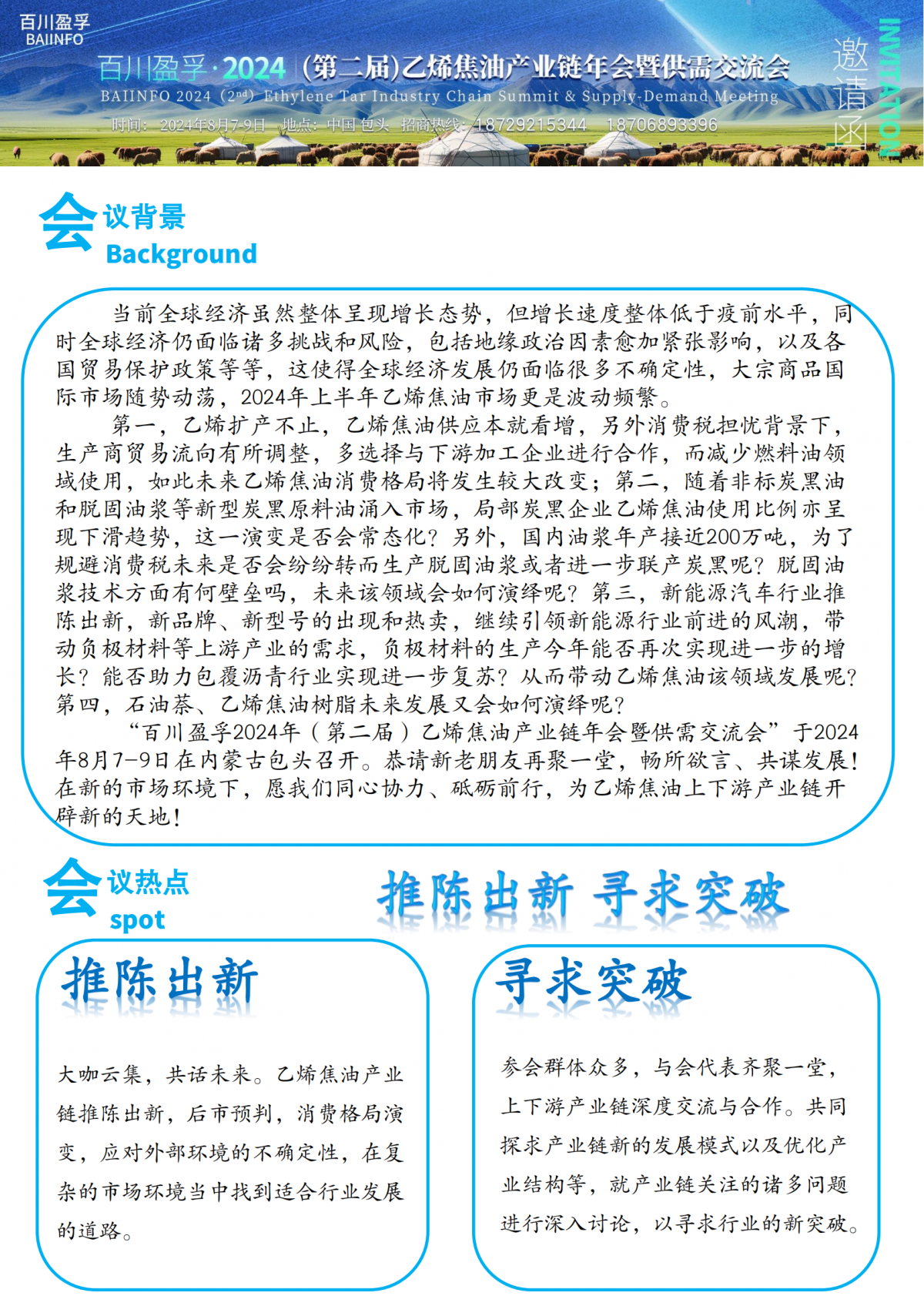 百川盈孚2024年(第二届)乙烯焦油产业链年会暨供需交流会