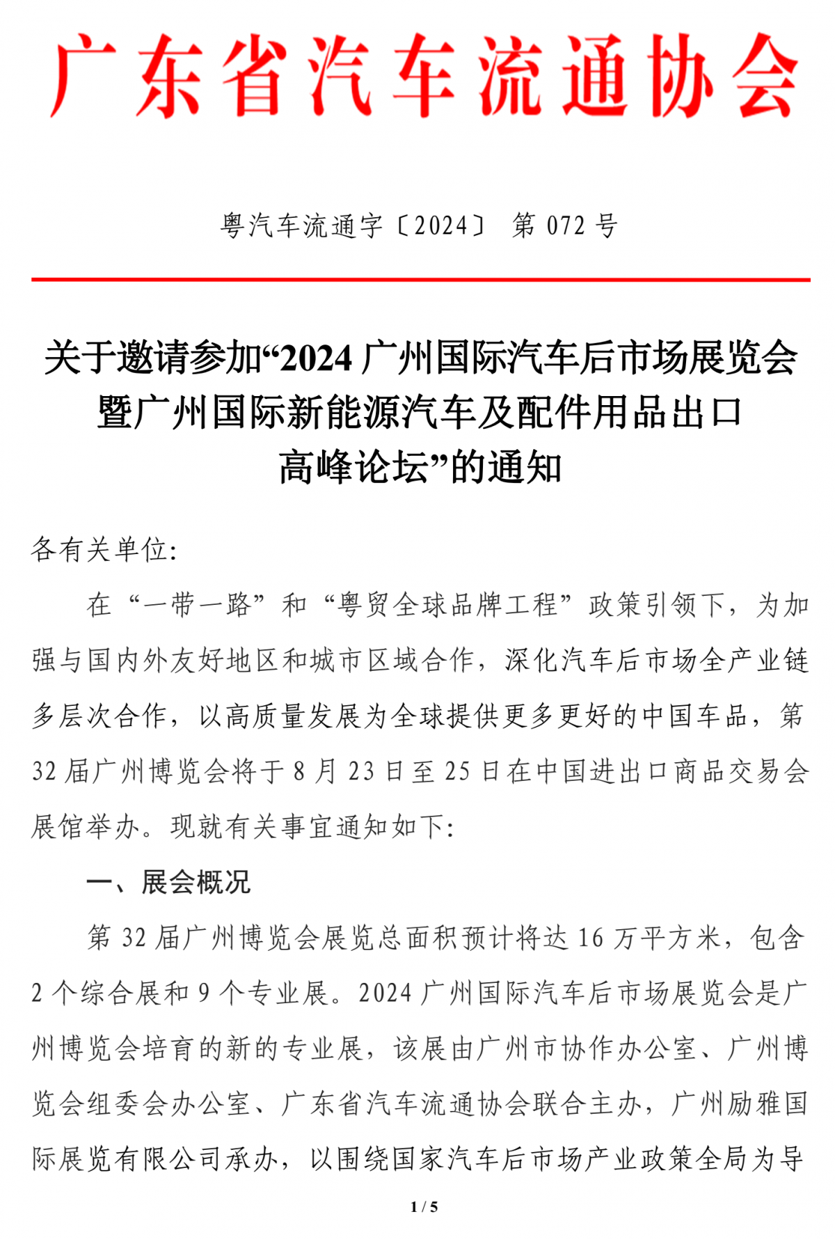 2024广州国际汽车后市场展览会暨广州国际新能源汽车及配件用品出口高峰论坛