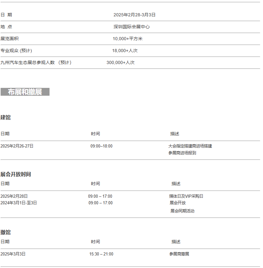 | 展会日期 | 2025-02-08 至 2025-03-03 |