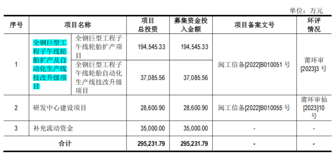 此次IPO募集资金在扣除相应发行费用后,将全部投入与主营业务相关的四大项目。其中,全钢巨型工程子午线轮胎扩产项目拟投入19.45亿元,全钢巨型工程子午线轮胎自动化生产线技改升级项目安排3.71亿元,研发中心建设项目规划投入2.86亿元,另有3.50亿元用于补充流动资金,募集资金投资总额达到29.52亿元。