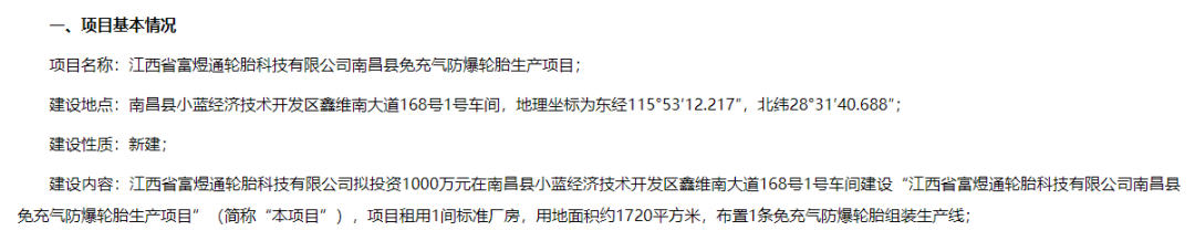 【橡胶助剂产业网】11月20日消息,江西省南昌县近日对富煜通轮胎科技有限公司投资的免充气防爆轮胎生产项目进行了报批前公示,这已是该项目环境影响评价的第三次网络公示。