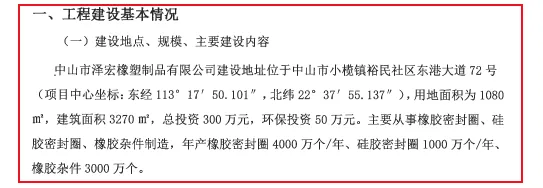 【橡胶助剂产业网】12月18日消息,“中山市泽宏橡塑制品有限公司年产橡胶密封圈、硅胶减震垫、橡胶杂件共8000万个新建项目”已于12月16日完成竣工环境保护验收环节并正式公示。该项目建设地点位于广东省中山市小榄镇裕民社区东港大道72号,属中山市小榄镇工业规划范围内。