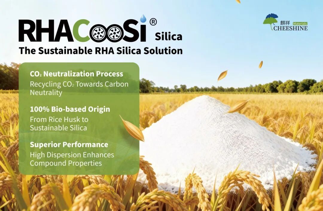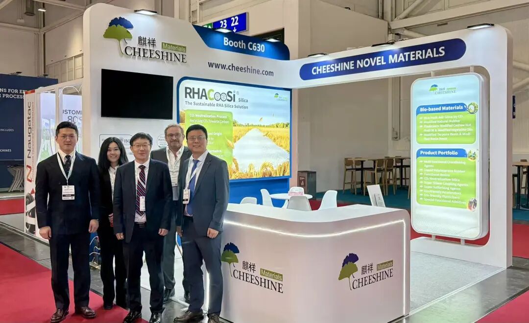 据橡胶助剂产业网了解,除技术报告外,麒祥在展会现场展出的可持续产品矩阵同样引人注目。以RHACOOSi®系列为代表的稻壳灰白炭黑成为展台焦点,该系列产品原料100%来源于生物基,并结合二氧化碳循环利用工艺,在生产环节实现显著减碳。其优异的高分散性和可调节的BET比表面积,为绿色轮胎胎面应用提供了更多可能。此外,麒祥还展出了改性天然橡胶、生物基增塑剂及树脂等生物基材料,以及多功能交联剂、硅烷偶联剂、液体橡胶等高性能橡胶助剂产品,全面覆盖轮胎制造的多维度需求。