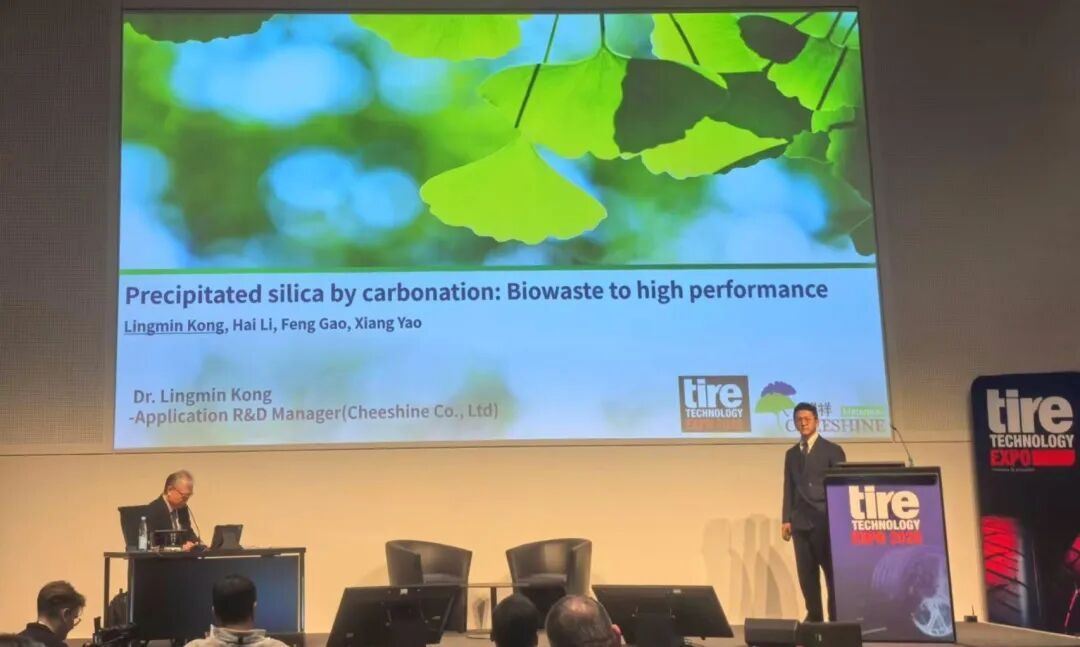 在展会官方技术研讨会上,麒祥技术团队揭晓了其创新的“以碳治碳”碳分沉淀工艺。该工艺以稻壳为核心提取原料,并在生产过程中循环使用二氧化碳替代传统硫酸,可实现高达60%的减排效果。通过这一技术产出的生物基白炭黑具备高分散性且比表面积可调的特性,为绿色轮胎胎面材料的开发提供了新的技术路径。与此同时,团队还重点介绍了超级硫化剂PSO-35的创新应用,该产品能够显著提升轮胎的耐热、耐磨及超耐久性能,助力轮胎产品在满足更高性能标准的同时延长使用寿命。