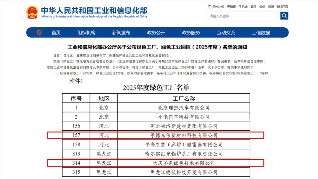 【橡胶助剂产业网】4月1日消息,国家工业和信息化部日前正式发布《关于公布绿色工厂、绿色工业园区(2025年度)名单的通知》,济南圣泉集团股份有限公司旗下两家子公司——大庆圣泉绿色技术有限公司与承德东伟新材料科技有限公司,凭借在绿色制造、节能降碳、清洁生产等领域的扎实成效,双双入选国家级绿色工厂。至此,圣泉集团累计拥有三家国家级绿色工厂,全产业链绿色发展实力进一步彰显。