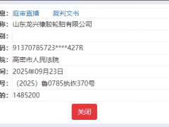 【橡胶助剂产业网】9月25日消息,山东省潍坊市高密市人民法院近日恢复执行一起涉及多家企业与个人的案件,案号为(2025)鲁0785执恢370号。山东龙兴橡胶轮胎有限公司被列为被执行人之一,执行标的金额为148.52万元。该案件涉及多名被执行人,除山东龙兴橡胶轮胎有限公司